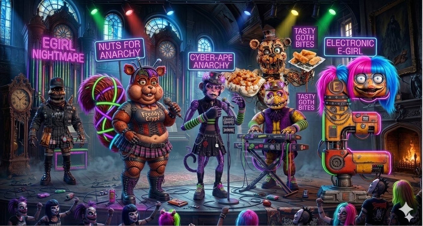 Son objectif est précis : remodeler les animatronics existants pour leur donner une nouvelle forme, une nouvelle identité… quelque chose qu’on décrit comme une esthétique alt-e-girl. Mais derrière ce terme presque banal se cache une réalité bien plus inquiétante.